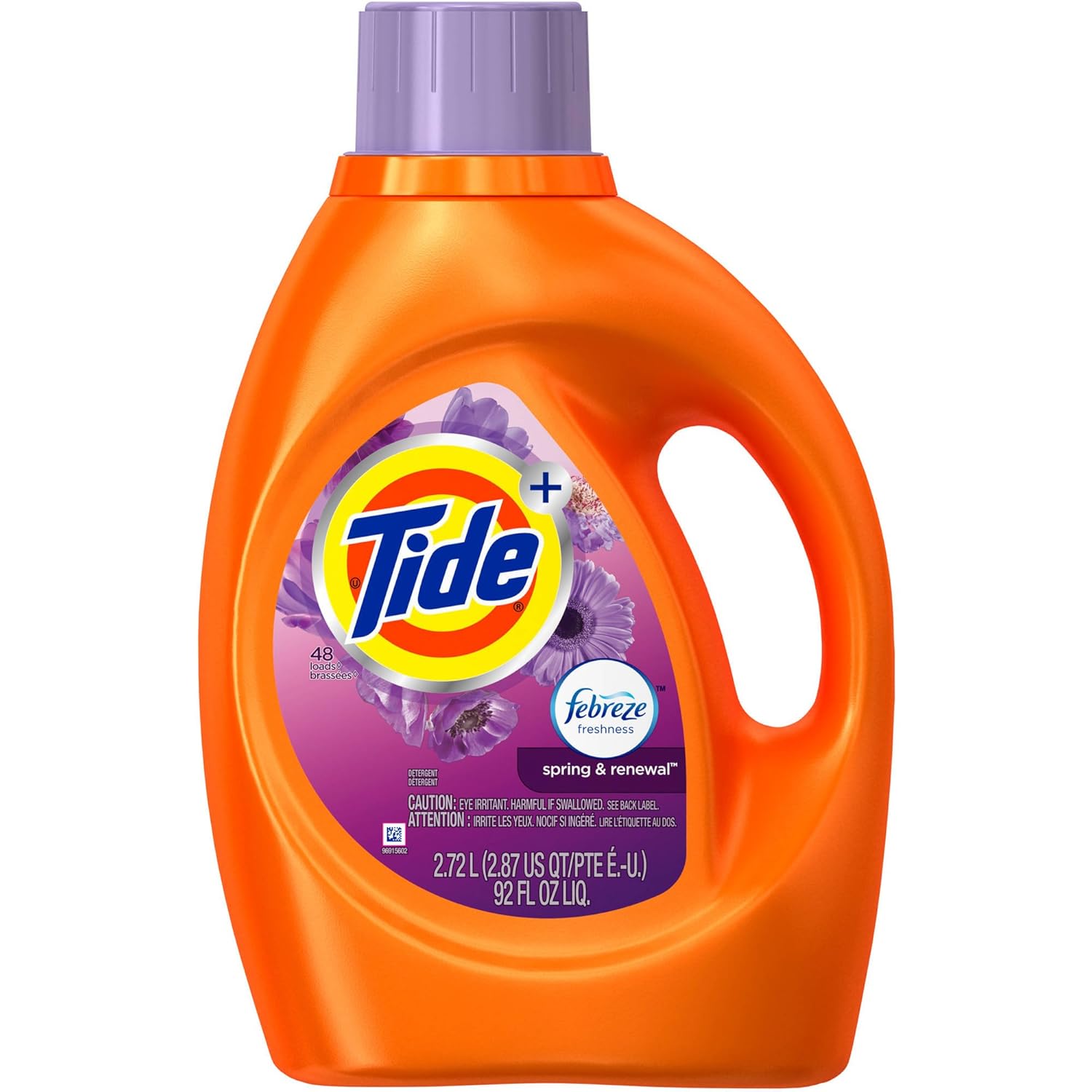 Tide Plus Febreze Long-lasting Freshness Spring and Renewal Scent Cleans, Freshens, Whitens, Brightens Liquid Laundry Detergent 92 fl oz (48 loads) is best for youTide Plus Febreze Freshness Spring & Renewal Scent Liquid Laundry Detergent now gives you the amazing clean you expect from Tide in addition to the long-lasting Febreze freshness you love! It now offers improved freshness that helps your fabrics stay fresh up to 3x longer vs. Tide original with the latest scent-renewal technology. Combining complementary perfumes, dual-scent pearls activate upon movement to provide your fabrics with bursts of freshness all day long. As part of the Plus Collection, Tide Plus Febreze Freshness gives you the amazing Tide clean you expect plus more of what you love vs. Tide original.Tide Plus Febreze Freshness Spring and Renewal Scent Liquid Laundry Detergent: 48 loads Now freshness that lasts 3x longer vs. Tide original Plus long-lasting freshness vs. Tide original Cleans, freshens, whitens, brightens Contains motion-activated dual-scent pearls Complementary scents provide long-lasting freshness