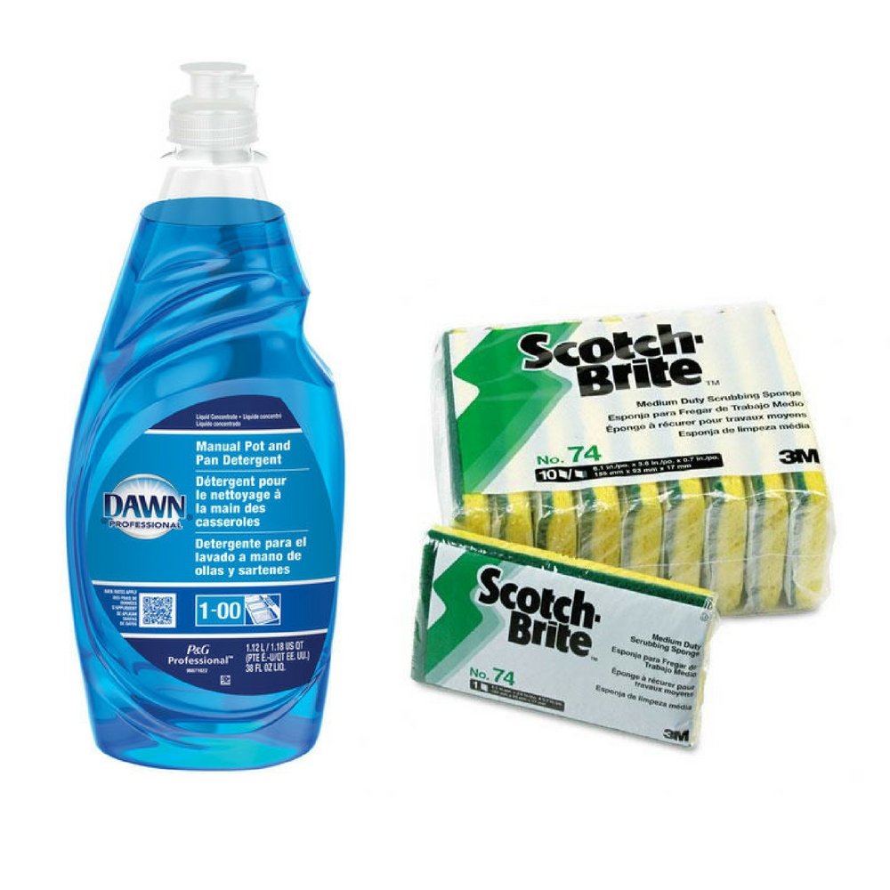 • The Dawn Dishwashing Liquid 38 Ounce Bottle (Case of 8) And Scotch Brite Medium Duty Scrubbing Sponges (Pack of 10) is a