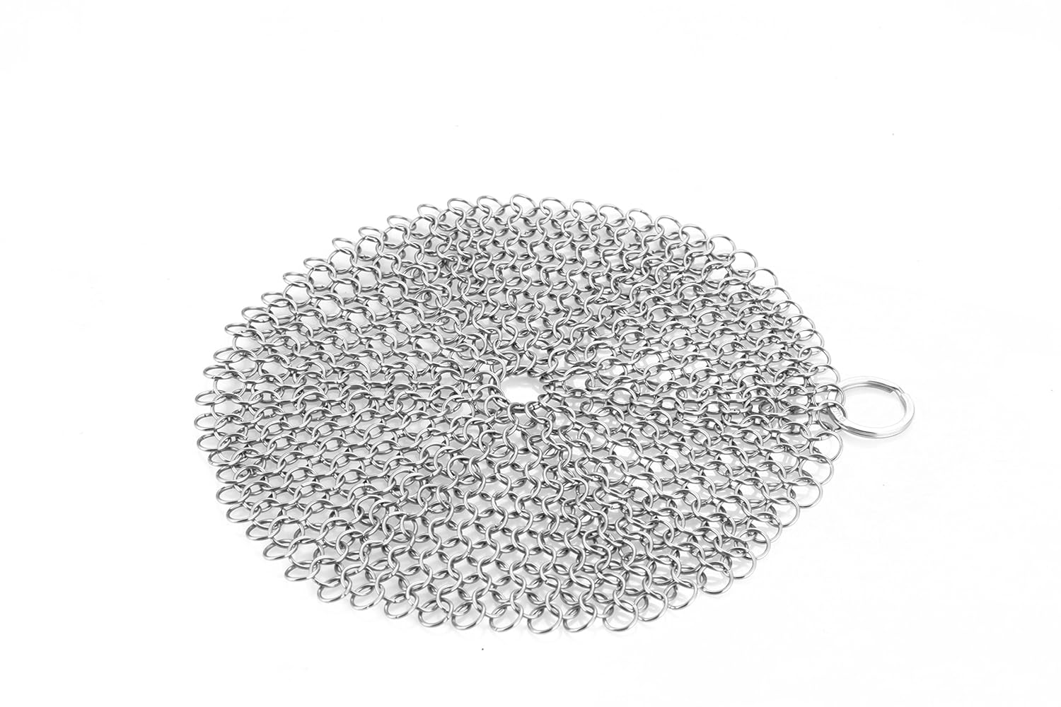 The Ringer Stainless Steel Chainmail Cast Iron Cleaner, 7 x 7-Inch is best for youThis Chainmail Scrubber is the ideal way of effectively cleaning your cast iron, stainless steel, pyrex and other non-coated cookware without ruining the finish or seasoning. An innovative cleaner that is easy to use and will get rid of those stubborn stuck-on food particles. A hygienic way of cleaning your cookware without worrying about continuously replacing germ-infested sponges and scraper pads.