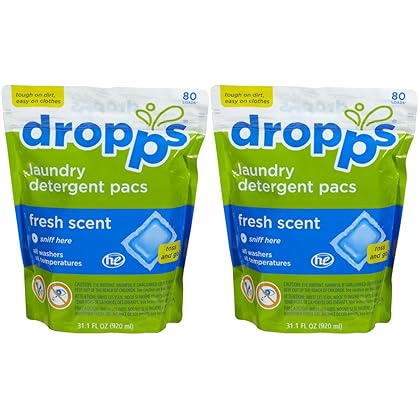 Dropps Detergent Pacs - Fresh Scent - 80 ct - 2 pk is best for youLighten your load with Dropps laundry detergent pacs. Dropps contain an innovative super concentrated formula with a split personality: tough on dirt, but easy on your favorite garments and sensitive skin. No heavy jugs, no measuring, no mess. Just toss and go! 20 loads.
