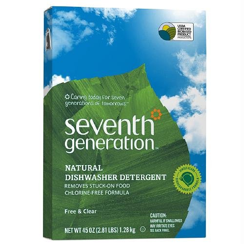 Seventh Generation Automatic Dishwasher Detergent, Free & Clear 45 oz is best for youDishwashing detergents don't need chlorine, phosphates, synthetic fragrances, or artificial dyes to do your kitchen's dirty work. And the planet doesn't need stuff like that being rinsed down the drain.