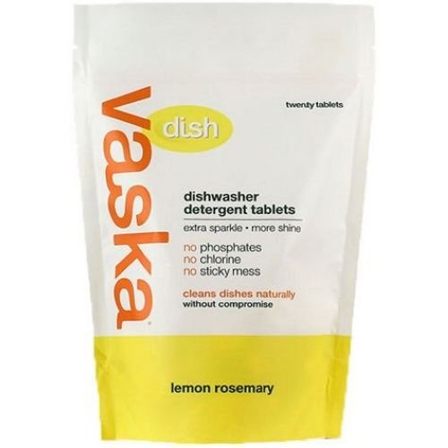 Vaska Lemon Rosemary Dishwasher Detergent Tablets - 20 per pack -- 6 packs per case. is best for youVaska Lemon Rosemary Dishwasher Detergent Tablets - 20 per pack -- 6 packs per case. Vaska is now out to conquer your dirty dishes with their NEW dishwasher detergent tablets. Vaskas proprietary tablets are made without the plastic shrink-wrap found on traditional dishwasher tablets. No shrink wrap means no toxic solvents, no sticky messe