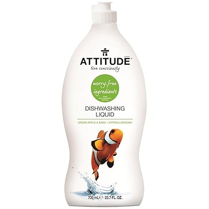 ATTITUDE Dishwashing Liquid - 23.7 oz - Green Apple & Basil is best for youATTITUDE Dishwashing Liquid Citrus Zest is an effective dish detergent. This formula contains essential oils and other ingredients that are tough on stains but soft on the hands. It comes in a convenient bottle so you can take along it even when you go on a camp. It contains pure essential oils that are good for your gentle hands.