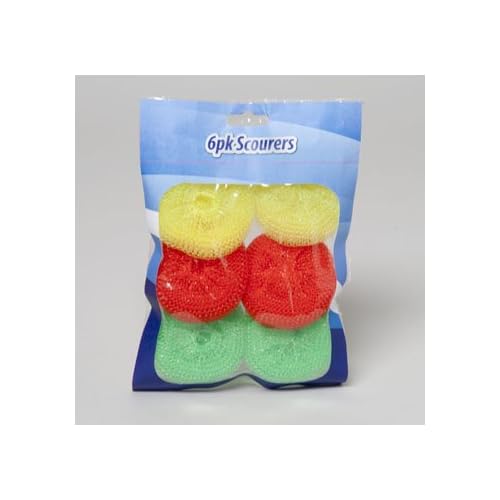 SCOURERS 6PK PLASTIC ROUND ALL PURPOSE 3AST COLORS PER PK, Case Pack of 36 is best for youThis polypropylene knitted mesh scourer won't scratch non-stick or coated cookware. It is odor and rust proof. Be sure to rinse pad clean after each use.